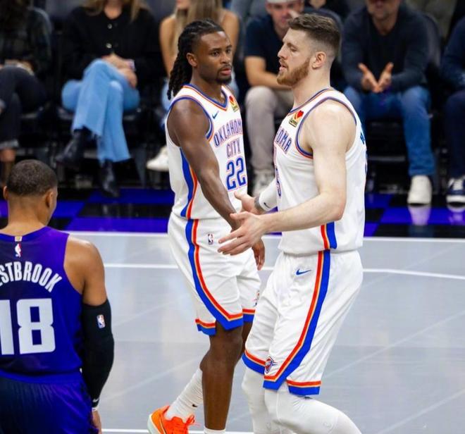 在新賽季的常規(guī)賽大幕拉開之后,雷霆展現(xiàn)出了恐怖的戰(zhàn)斗力,在二當(dāng)家杰倫威廉姆斯一場(chǎng)未打,內(nèi)線核心霍姆格倫打打停停的情況下,他們?cè)贛VP亞歷山大的率領(lǐng)下,一度豪取開賽八連勝,但上一場(chǎng)常規(guī)賽受到背靠背作戰(zhàn)的影響,在客場(chǎng)被波特蘭開拓者上演大逆轉(zhuǎn),遭遇到了賽季首敗。